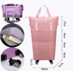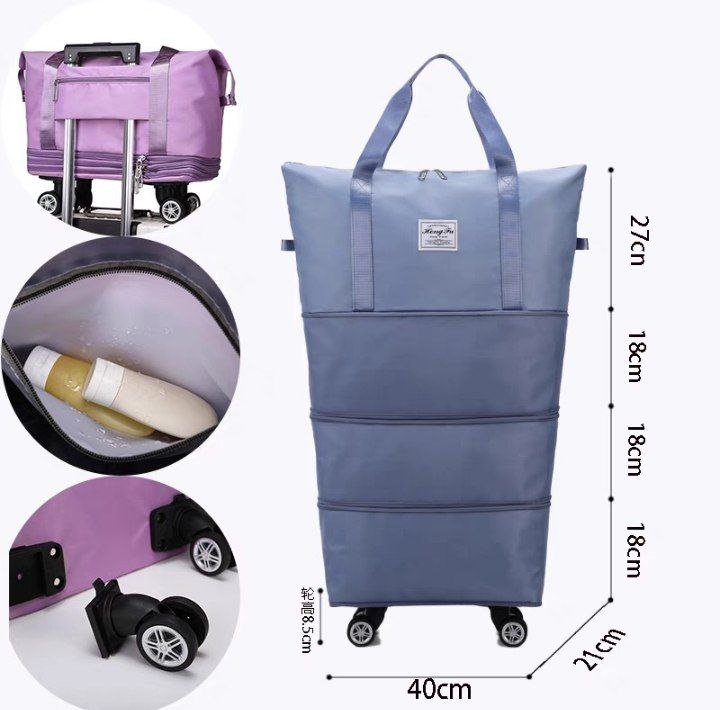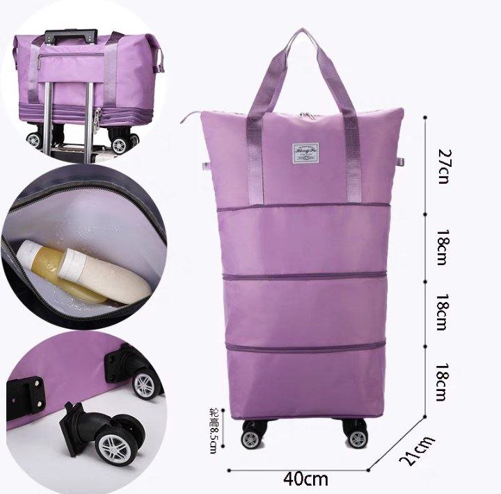 شنطة خفيفة بس متينة جدًا، ضد المية، وبعجلات سوفت بتلف بسهولة، ومع 3 مستويات توسيع تقدري تتحكمي في المساحة حسب الحاجة.